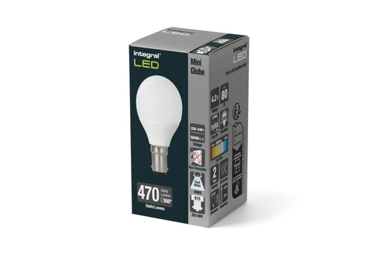 GOLF BALL BULB B22 470LM 4.2W 2700K NON-DIMM 240 BEAM FROSTED INTEGRAL - ILGOLFB22NC018