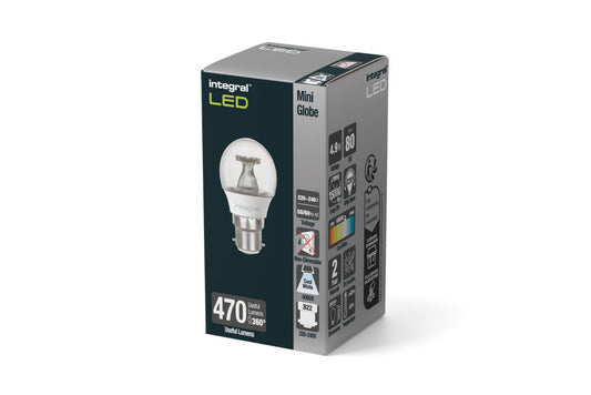 GOLF BALL BULB B22 470LM 4.9W 4000K NON-DIMM 220 BEAM CLEAR INTEGRAL - ILGOLFB22NE077