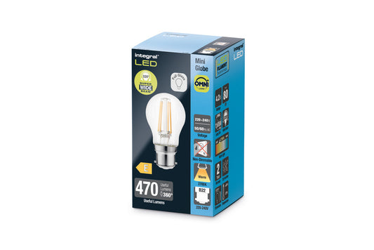 OMNI FILAMENT GOLF BALL BULB B22 470LM 3.4W 2700K NON-DIMM 330 BEAM CLEAR INTEGRAL - ILGOLFB22NC030