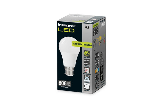 GLS BULB WITH DUSK TO DAWN DUAL SENSOR B22 806LM 8W 4000K NON-DIMM 240 BEAM FROSTED INTEGRAL - ILGLSB22SE143