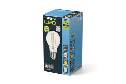 OMNI FILAMENT GLS BULB E27 1055LM 7.8W 2700K NON-DIMM 330 BEAM CLEAR INTEGRAL - ILGLSE27NC038