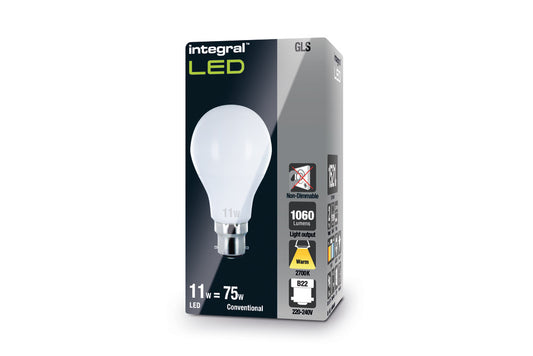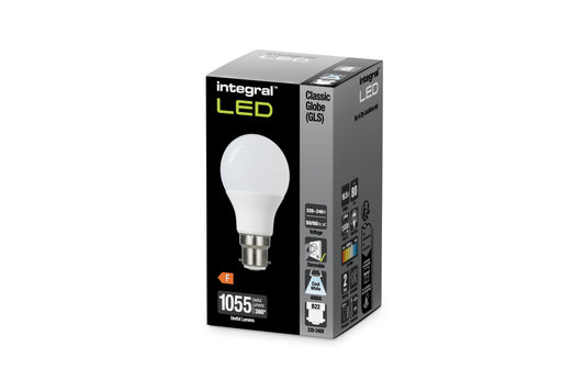 GLS BULB B22 1055LM 9.5W 5000K NON-DIMM 240 BEAM FROSTED INTEGRAL - ILGLSB22NF016