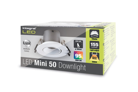 MINI TILTABLE DOWNLIGHT 50MM CUTOUT 3.3W 155LM 47LM/W 3000K 15 BEAM NON-DIM FINISH-F WHITE INTEGRAL - ILDL50J005