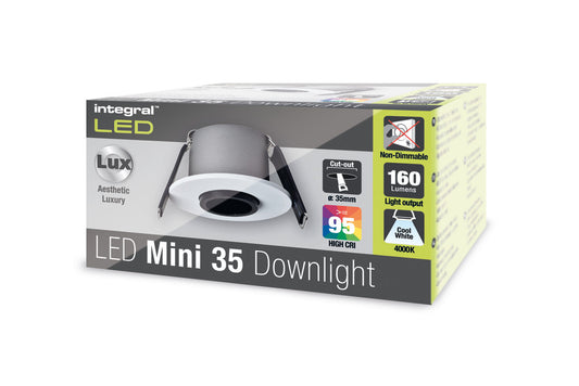 MINI DOWNLIGHT 35MM CUTOUT 3.3W 160LM 48LM/W 4000K 15 BEAM NON-DIM FINISH-A WHITE INTEGRAL - ILDL35J003