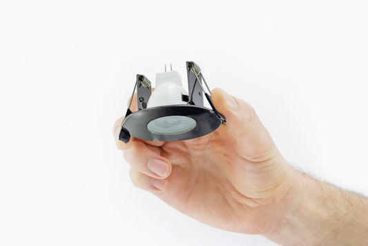 EVOFIRE MICRO BEZEL FIRE RATED DOWNLIGHT 60MM CUTOUT 72MM DIAMETER IP65 BLACK ROUND +GU10 HOLDER - ILDLFR60D109