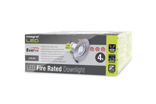 EVOFIRE FIRE RATED DOWNLIGHT 70MM CUTOUT 4PACK IP65 SATIN NICKEL ROUND +GU10 HOLDER INTEGRAL - ILDLFR70D002-4