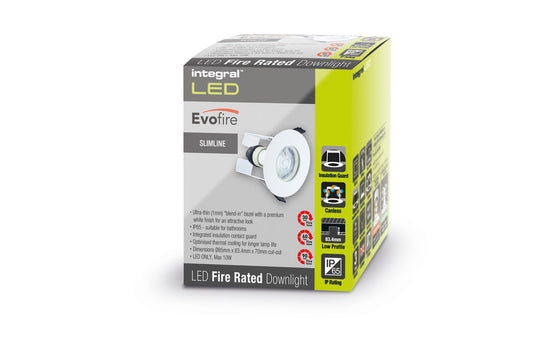 EVOFIRE MICRO BEZEL FIRE RATED DOWNLIGHT 60MM CUTOUT 72MM DIAMETER IP65 WHITE ROUND +GU10 HOLDER - ILDLFR60D104