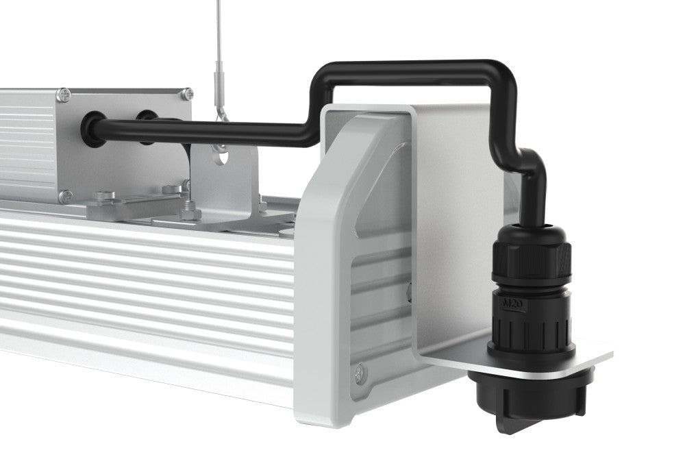 The Integral LED Vector Max Linear High Bay is built to last in the most demanding industrial environments. Compact, powerful and efficient, the Vector Max offers a high lumen output for its size at an incredibly efficient 180lm/W. IP44 ingress protection rated and IK10 shock-resistance makethis rugged luminaire ideal for warehouses, production facilities, factories and other industrial environments.The 30x70° asymmetrical beam angle makes this light perfect for long and narrow spaces like in between warehouse racking.The Vector Max features a Zhaga 18 socket for plug and play control and sensor add ons, including Casambi, PIR and microwave. Surface mounting brackets sold separately. See related products for accessory options.