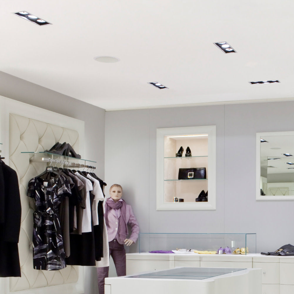 AccentPlus Gimbal downlights are the perfect cost-effective solution for retail environments. They take virtually every GU10 or MR16 bulb on the market as well as Integral LED's light modules for a more powerful light output (see related products below). For installations where perfect colour rendering is required, we recommend our high CRI GU10's. The fitting is 30 degrees tiltable in both directions and the light beam can be further fine-tuned by placing the inner ring at the required position through 365° on the horizontal plane. Bulb replacement is also simple and quick, with the inner ring being removable from the front face of the fitting, rather than having to remove the whole fixture from the ceiling.