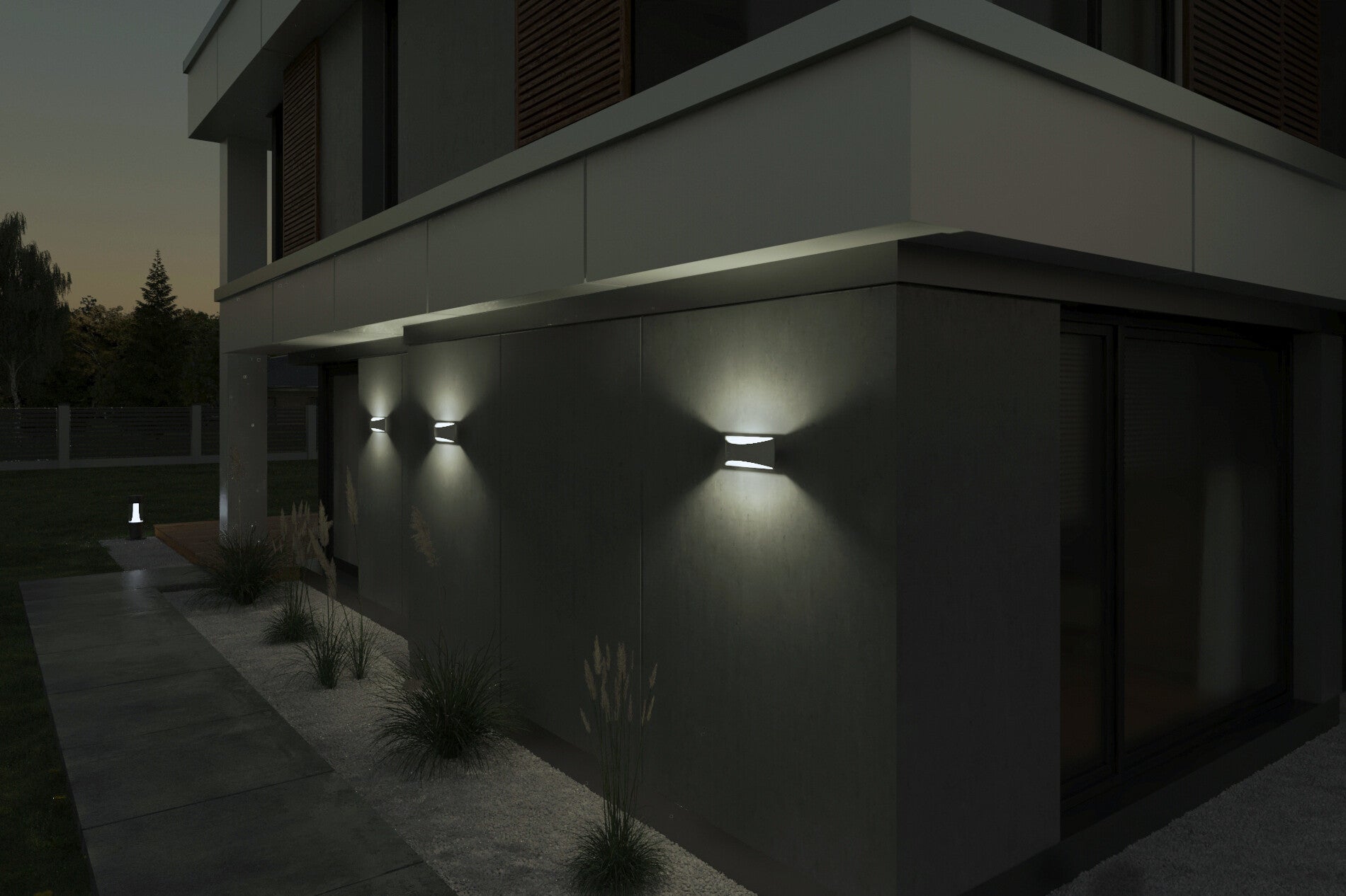 Kanlux BISO are facade fittings characterized by simple and attractive design. They can be used as a fitting for interiors (they have an appropriate CRI coefficient), at the same time they can be used on building facades (IP54). In Kanlux BISO holder light falling from the LED module is softly diffused on facade and a rear part of the holder.