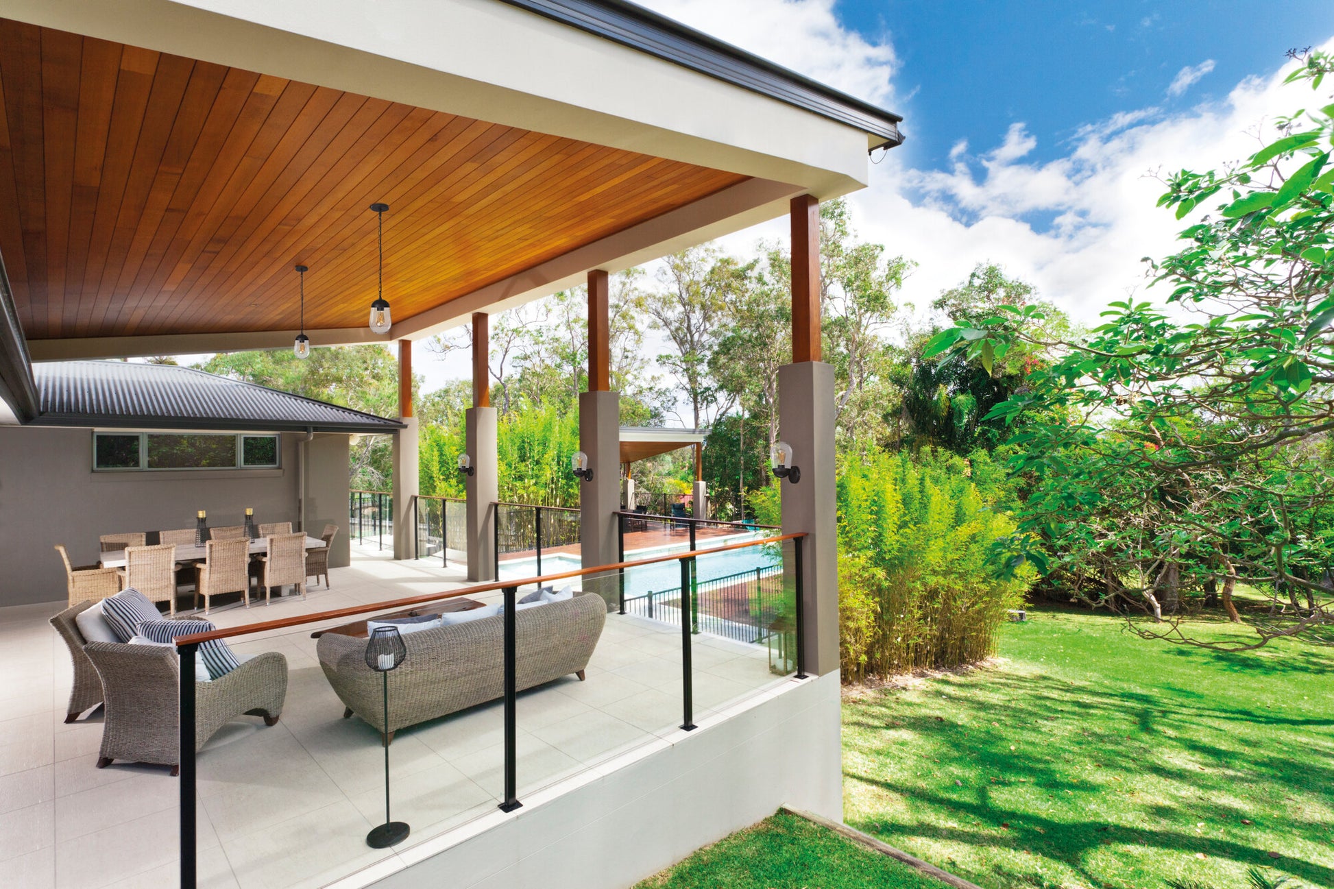 Kanlux LIEGO garden luminaires are impressive oval-shaped glass lampshades, with which it is possible to use decorative LED filaments that can be an additional decoration illuminating the garden. They can be used not only to light a garden but also gazebos, terraces and patios, while the wall-mounted luminaires successfully illuminate balconies. In the whole family (pendant lamp, posts, wall-mounted), it is possible to use replaceable LED light sources with an E27 base.